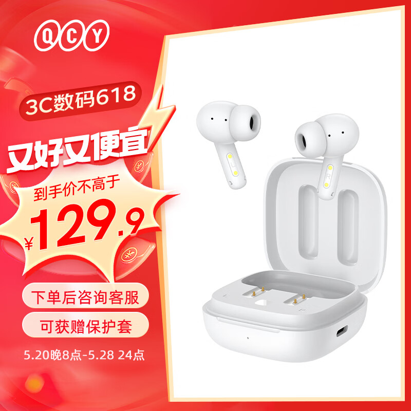 QCY T13 ANC 真无线蓝牙耳机 主动降噪款 运动耳麦 主从切换4麦通话降噪 耳机快充 全手机通用 白色价格:129.90元!