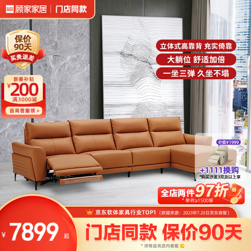 顾家家居皮沙发客厅高脚电动6055落日橙四人位躺左价格:7899.00元!