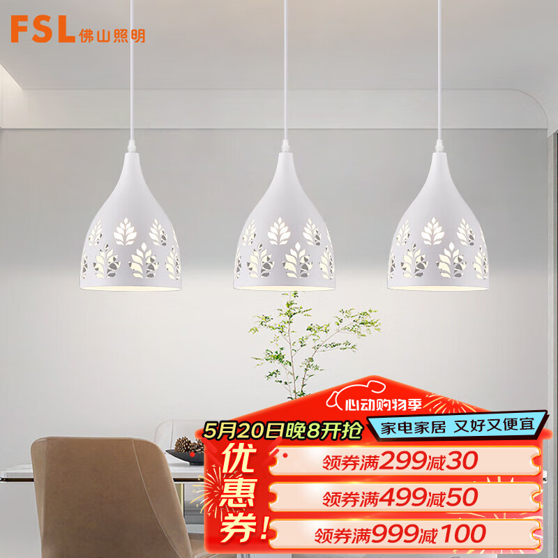 FSL佛山照明LED吊灯餐厅灯具三头吸顶餐吊灯饰创意吧台灯长条50623价格:239.00元!