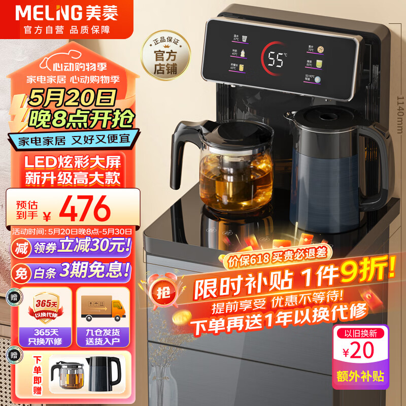 美菱(MeiLing)茶吧机家用饮水机遥控智能背板下置水桶全自动自主控温立式多功能泡茶机冷热型立式饮水机MY-C228B价格:559.00元!