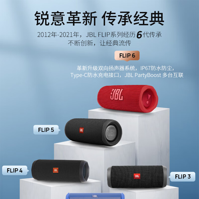 JBL FLIP6 音乐万花筒六代 便携式蓝牙音箱 低音炮 防水防尘设计 多台串联 赛道扬声器 独立高音单元 金属黑价格:799.00元!