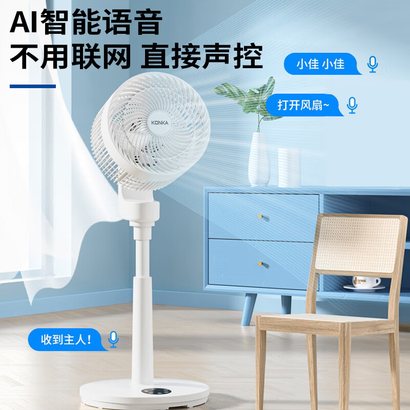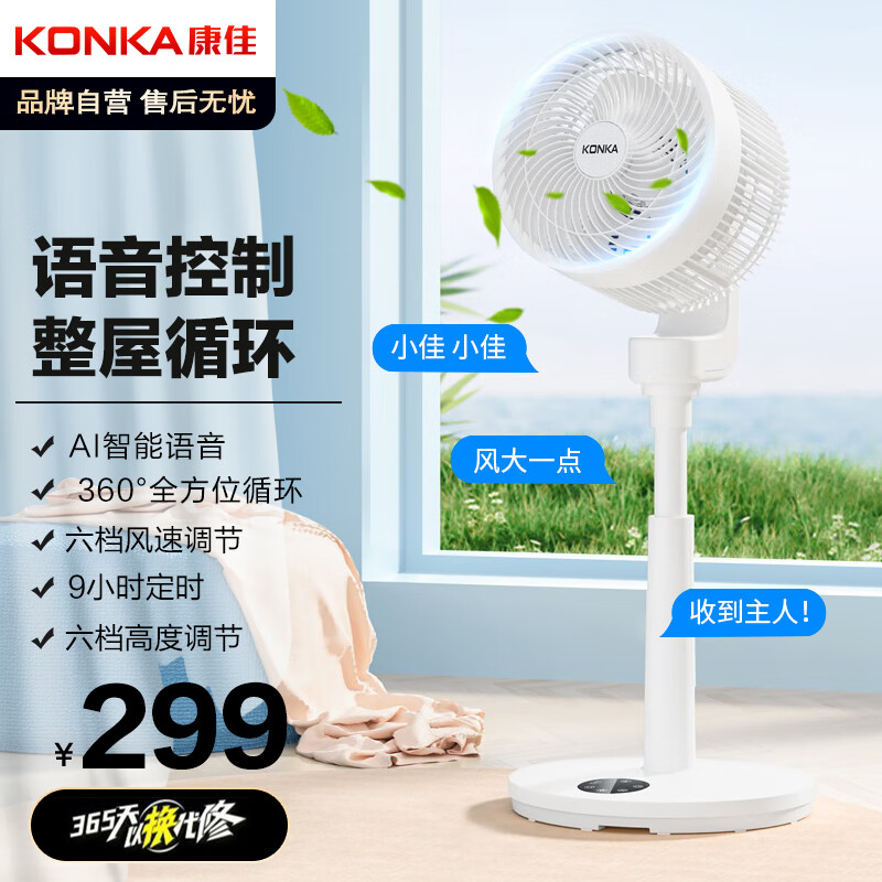 康佳(KONKA)空气循环扇电风扇家用电扇八字摇头小风扇遥控风扇立式大风量节能轻音落地扇KXHS-1901W-P价格:299.00元!
