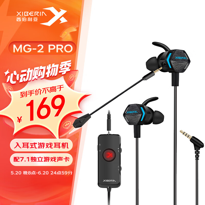 西伯利亚(XIBERIA)MG-2PRO 耳机入耳式有线 游戏耳机带麦 电脑手机耳机 震动 7.1声道外置声卡 黑色价格:199.00元!
