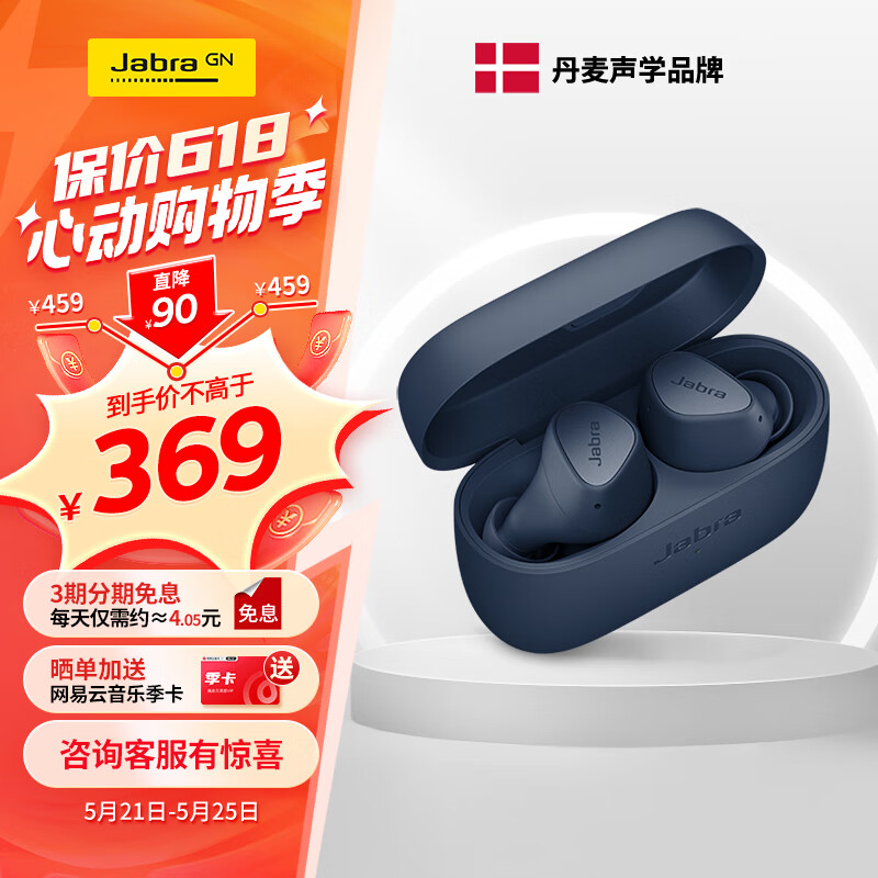 捷波朗(Jabra)Elite4主动降噪耳机 E4真无线蓝牙耳机 小水滴全新上市 音乐运动耳机 海军蓝价格:369.00元!