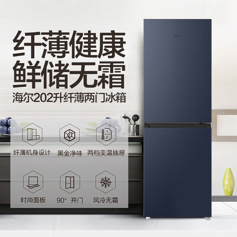 海尔冰箱双门小冰箱小型家用风冷无霜节能省电迷你两门超薄智能二门租房电冰箱BCD-202WGHC290B9[家电]价格:1599.00元!