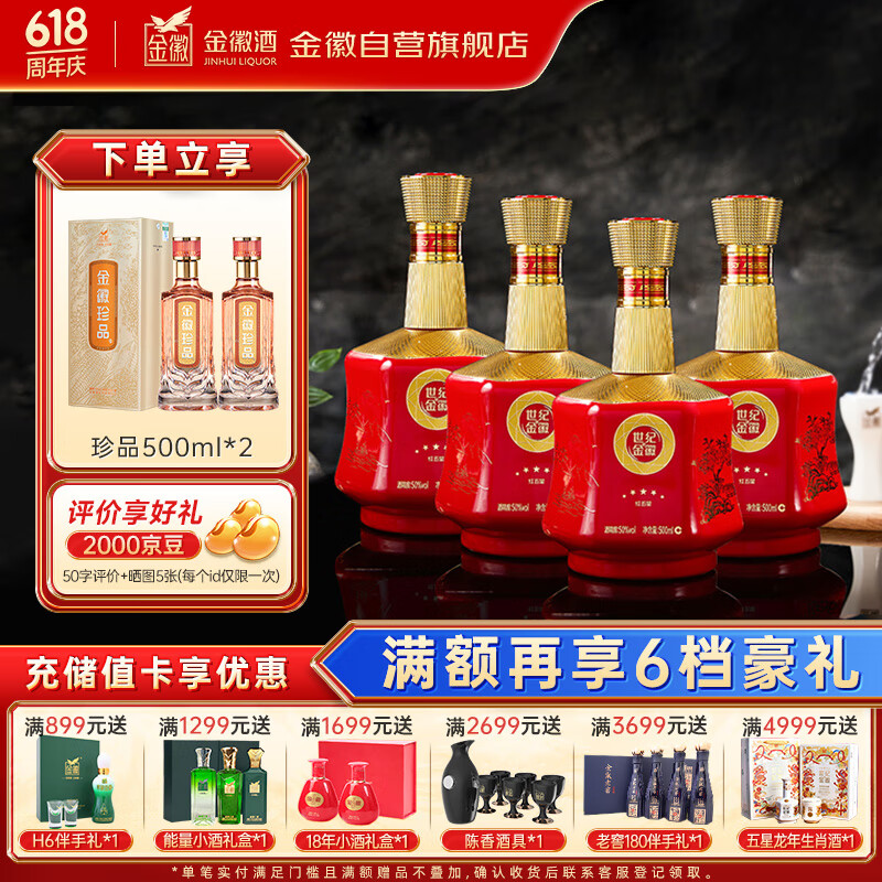 金徽 世纪金徽红五星 浓香型白酒 50度 500ml*4瓶 整箱装价格:1152.00元!