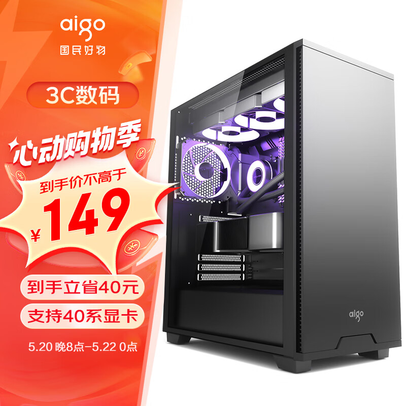 爱国者(aigo)F70 黑色 电脑主机箱 ATX台式大机箱(全侧透钢化玻璃/E-ATX主板/360水冷/支持40系显卡)价格:149.00元!