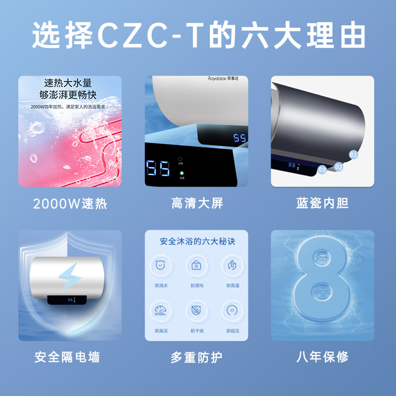 荣事达(Royalstar)80升储水式电热水器电家用速热数显节能热水器小体积省电 RSD-CZC80T价格:699.00元!