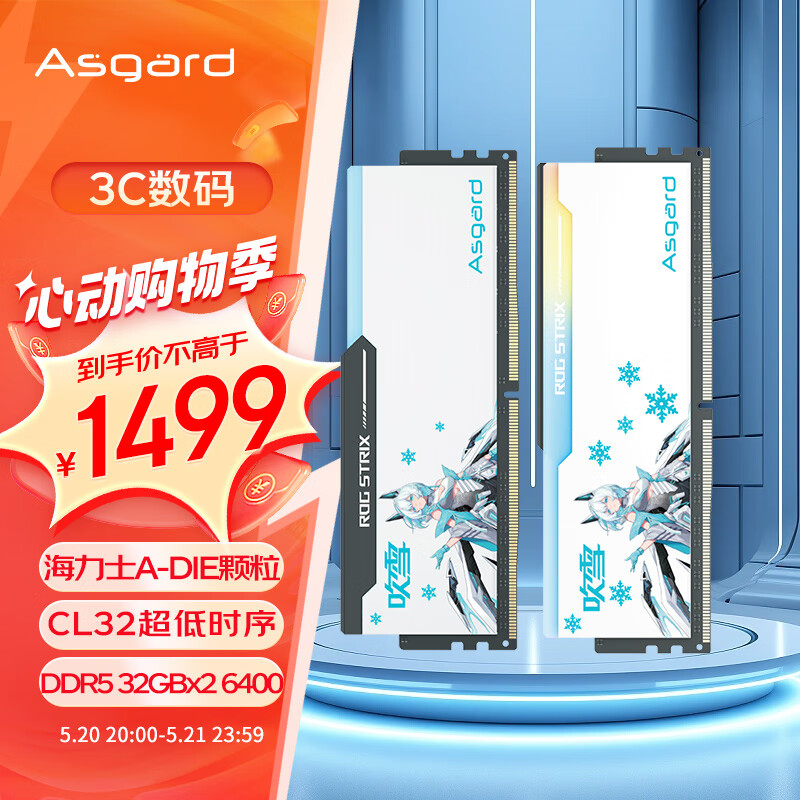阿斯加特(Asgard)64GB(32GBx2)套 DDR5 6400 台式机内存 RGB灯条-吹雪联名款【CL32】价格:1499.00元!
