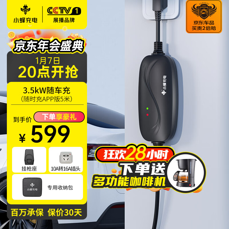 小蜂充电(HIVEWALLBOX)3.5kW便携随车充新能源汽车充电器App智能款外出旅行必备-随时充5米价格:799.00元!