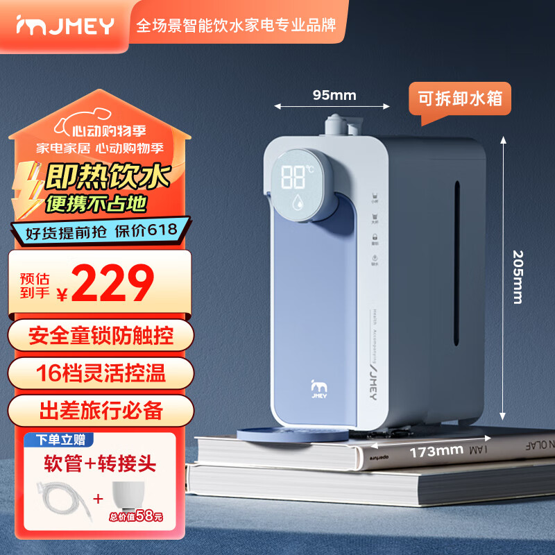 集米(jmey)M2PLUS即热式饮水机莫奈蓝套装带水箱便携式即热饮水机迷你台式家用小型速出差旅行电水壶价格:229.00元!