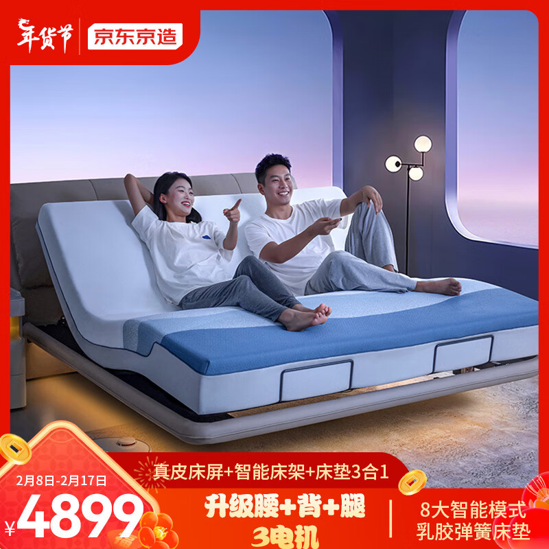 京东京造真皮悬浮智能床 电动升降|多功能|零重力 主卧双人床1.5×2米BE02价格:5399.00元!
