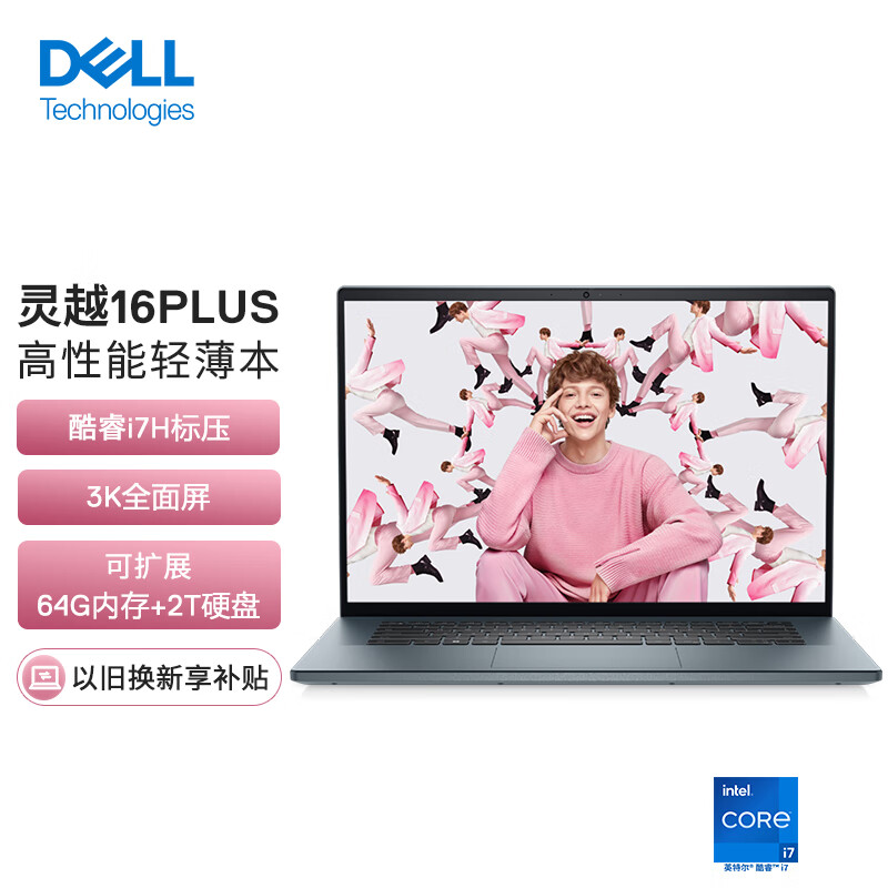 戴尔(DELL)笔记本电脑 灵越16PLUS-7620 16英寸3K高性能轻薄本办公本商务游戏 酷睿i7标压 16G 512GB RTX显卡价格:6999.00元!