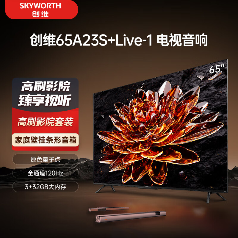 创维电视65A23S+Live-1音响套装 65英寸电视机量子点 全通道4K 120Hz高刷 3+32G 家用壁挂条形音响价格:3098.00元!