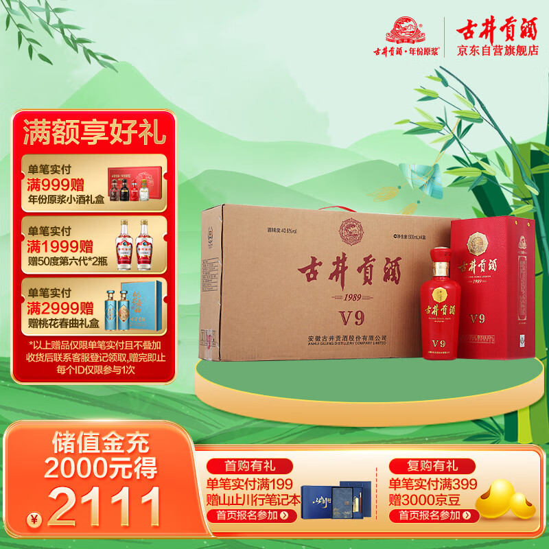 古井贡酒 v9 浓香型白酒 40.6度500ml*4瓶 整箱装价格:339.00元!