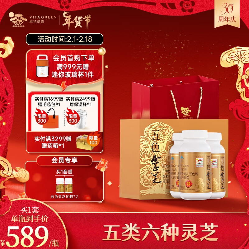维特健灵 五色灵芝胶囊礼盒装72粒/瓶*3增强免疫力中国香港生产 礼品送人 送长辈老人价格:2097.00元!