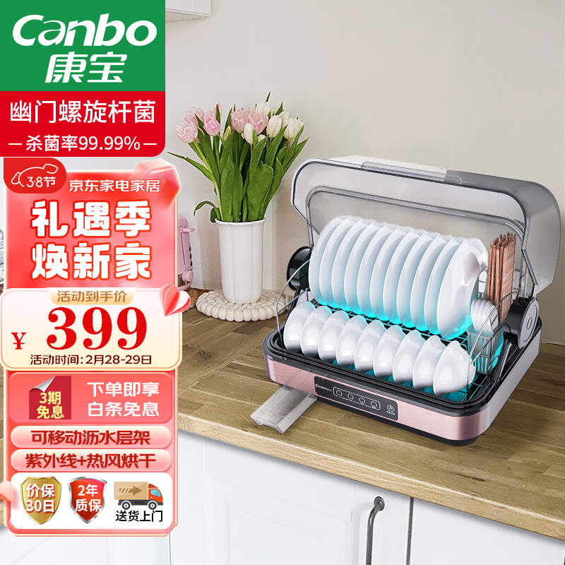 康宝(Canbo)消毒柜家用小型台式 消毒碗柜立式厨房柜 碗筷餐具婴儿奶瓶烘干保洁紫外线免沥水消毒器ZTD40-KH1Z价格:399.00元!