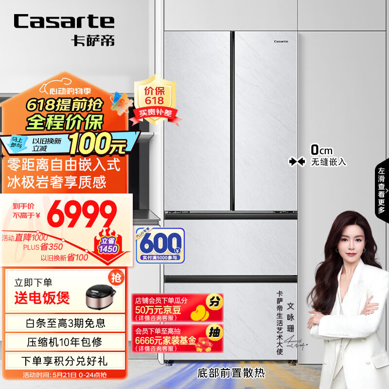 卡萨帝(Casarte)418升原石冰极岩系列超薄零嵌入式法式多门四开门白色家用一级电冰箱家用BCD-418WLCFDM4WYU1价格:7699.00元!