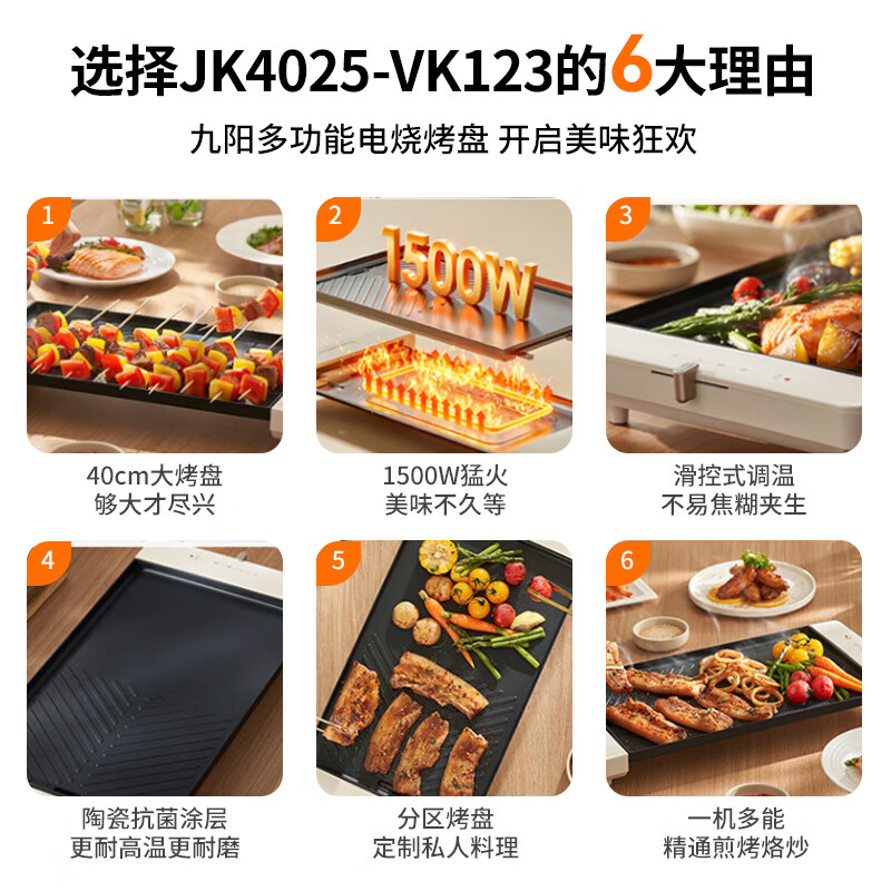 九阳(Joyoung)烤肉盘烤肉锅烤肉家用多功能电烤炉大容量大功率轻油少烟电烤盘烤肉机JK4025-VK123价格:119.00元!
