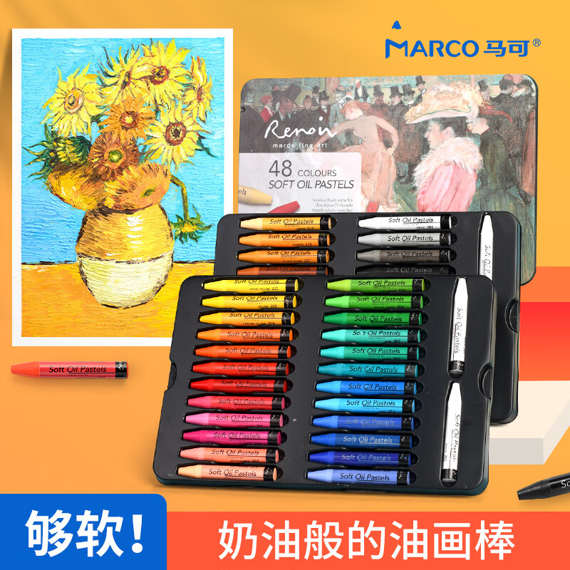 马可(MARCO)油画棒 蜡笔 重彩油画棒48色+4支 专业美术绘画套装铁盒装 雷诺阿系列360006C价格:59.90元!