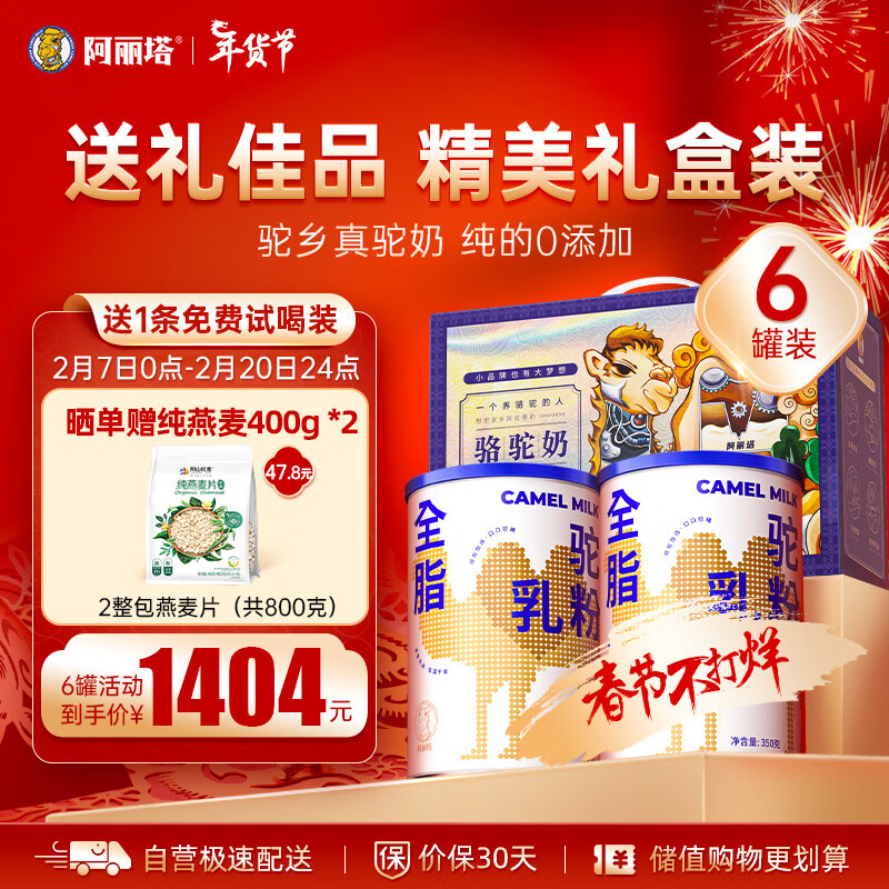 阿丽塔正宗骆驼奶粉中老年高钙成人奶粉无蔗糖纯骆驼乳粉送礼350g*6罐价格:1404.00元!