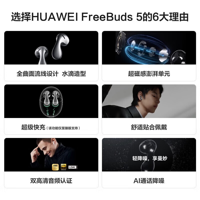 华为(HUAWEI)蓝牙耳机 FreeBuds 5 至臻 银 适用于华为mate60 半入耳降噪水滴 音乐游戏 苹果安卓手机通用价格:691.00元!