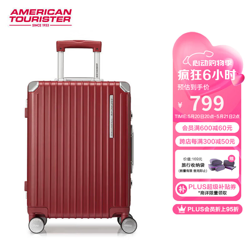 美旅箱包简约男女行李箱高端框架拉杆箱旅行密码箱婚庆箱20英寸NH7红色价格:1009.00元!