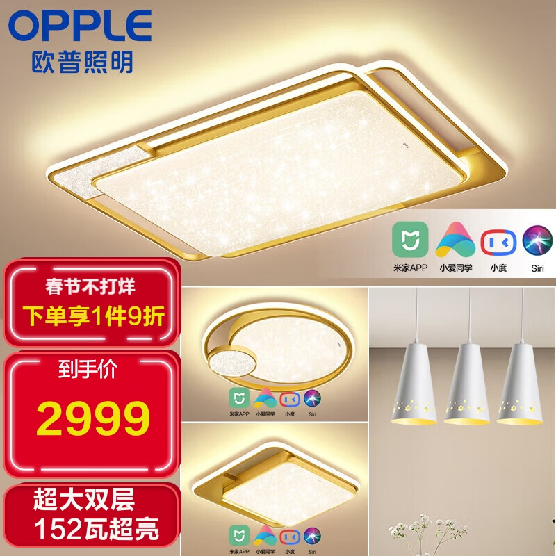 欧普(OPPLE)吸顶灯几何现代简约LED客厅卧室餐厅灯具套餐智能语音调光 套餐2价格:3332.00元!