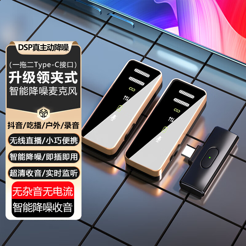 品士S18type-c接口一拖二无线领夹麦克风收音麦手机直播录音降噪抖音短视频拍摄唱歌K歌户外便携传音设备价格:139.00元!