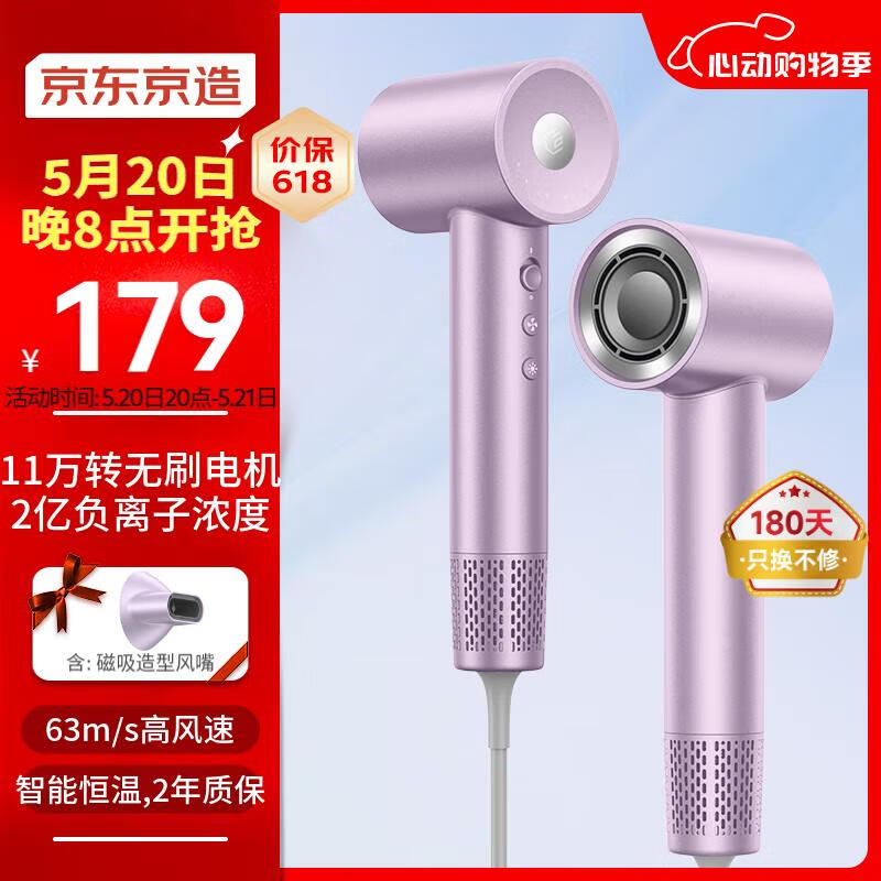 京东京造奈丝·智能高速吹风机套装SE 紫 负离子大风力速干电吹风机家用大功率电吹风筒 母亲节礼物生日礼物价格:199.00元!