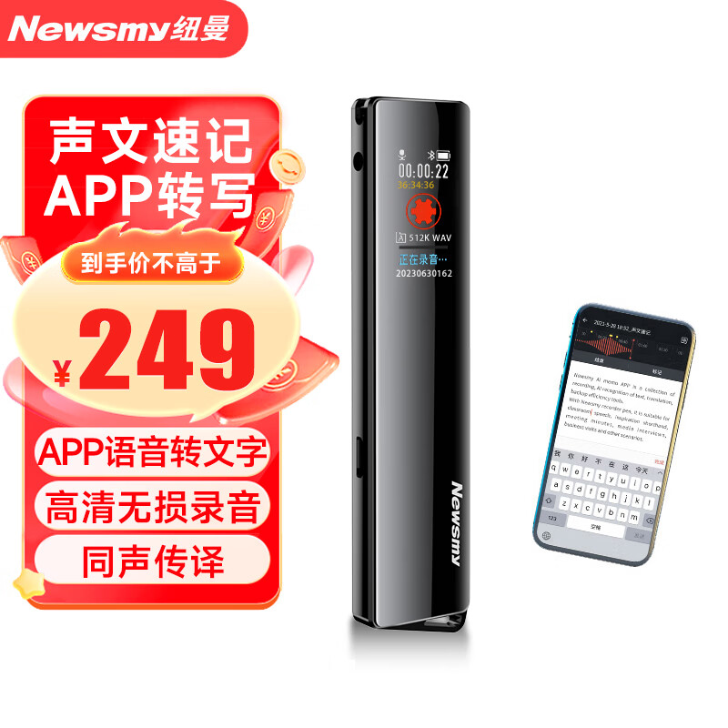 纽曼智能录音笔 V03 Pro 32G 蓝牙版 会议录音转文字 同声翻译 声文速记 专业级降噪 一键录音 哑黑价格:299.00元!