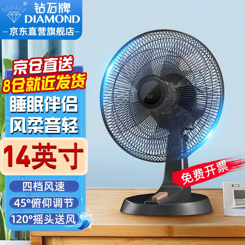 钻石牌(DIAMOND) 台式电风扇家用台扇风扇宿舍卧室台风扇客厅办公室节能省电摇头电扇学生床上 FT-30-A五叶机械 推荐卧室/台面价格:109.00元!