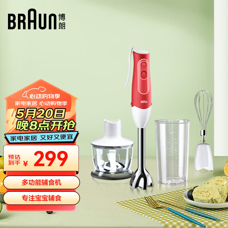 博朗(BRAUN)辅食机 料理机 家用手持式料理棒 打蛋器榨汁机 料理棒 限定红MQ535价格:299.00元!