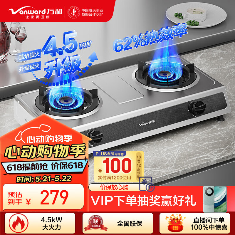 万和(Vanward)燃气灶具 家用台式不锈钢燃气灶 液化气双灶具 煤气炉煤气灶台 4.5kW大火力 JZY-D9B28(液化气)价格:279.00元!