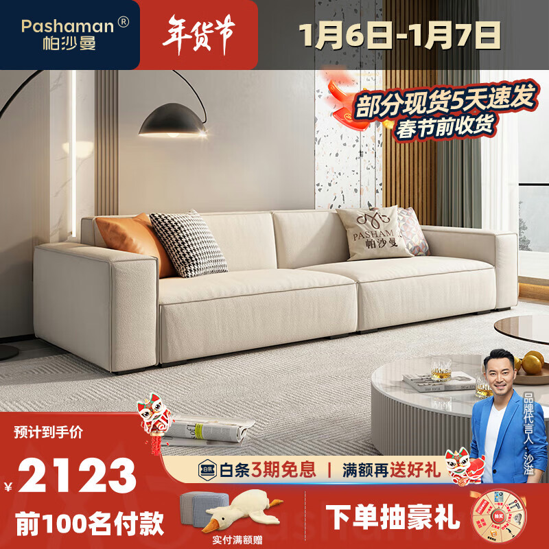 帕沙曼猫抓布艺沙发现代简约小户型客厅奶油风豆腐块科技布 2.3米 3185价格:2722.00元!