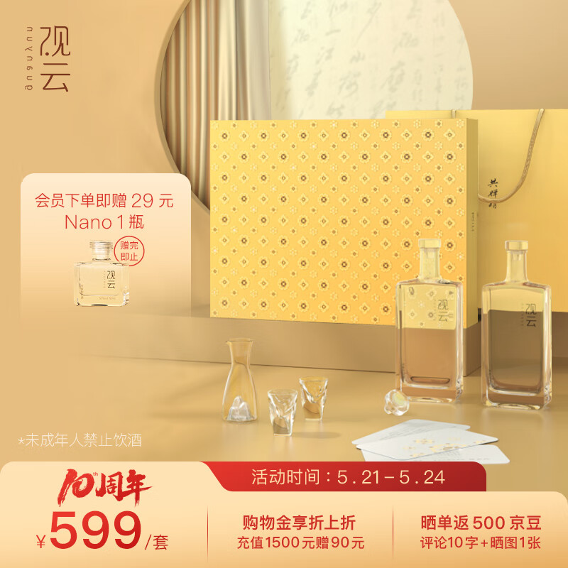 观云共婵娟 浓香型白酒 56度 500ml*2瓶 礼盒装 内含酒具 送礼宴请价格:448.00元!