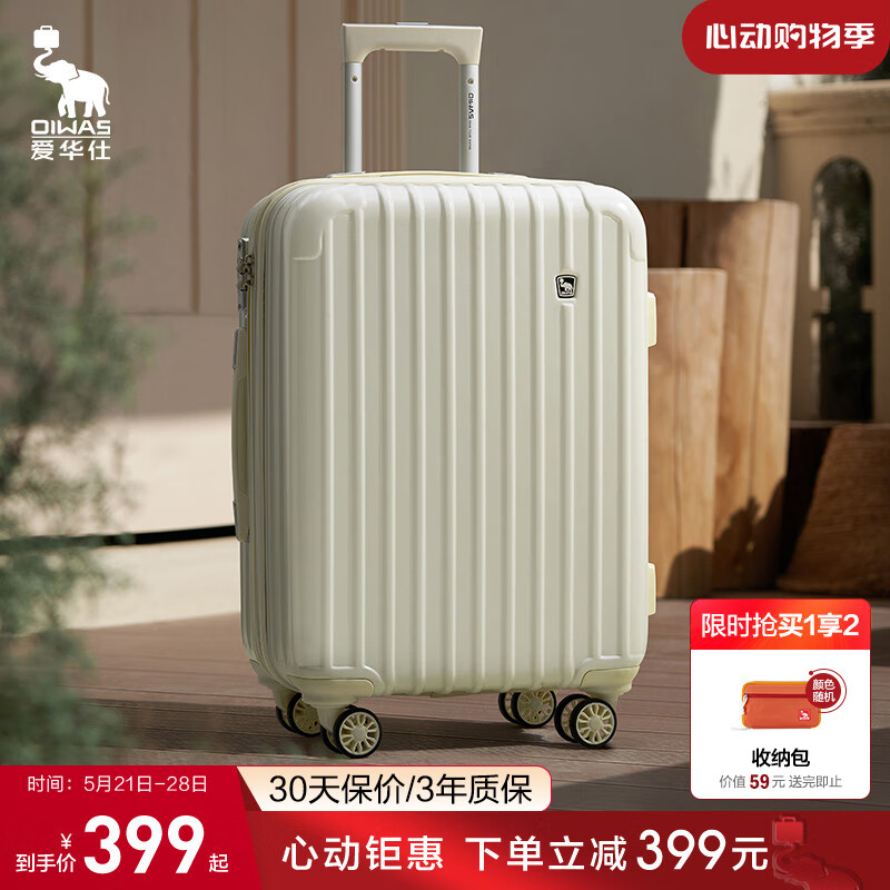 爱华仕行李箱女拉杆箱男旅行箱大容量密码箱24英寸可扩展学生箱珍珠白价格:399.00元!