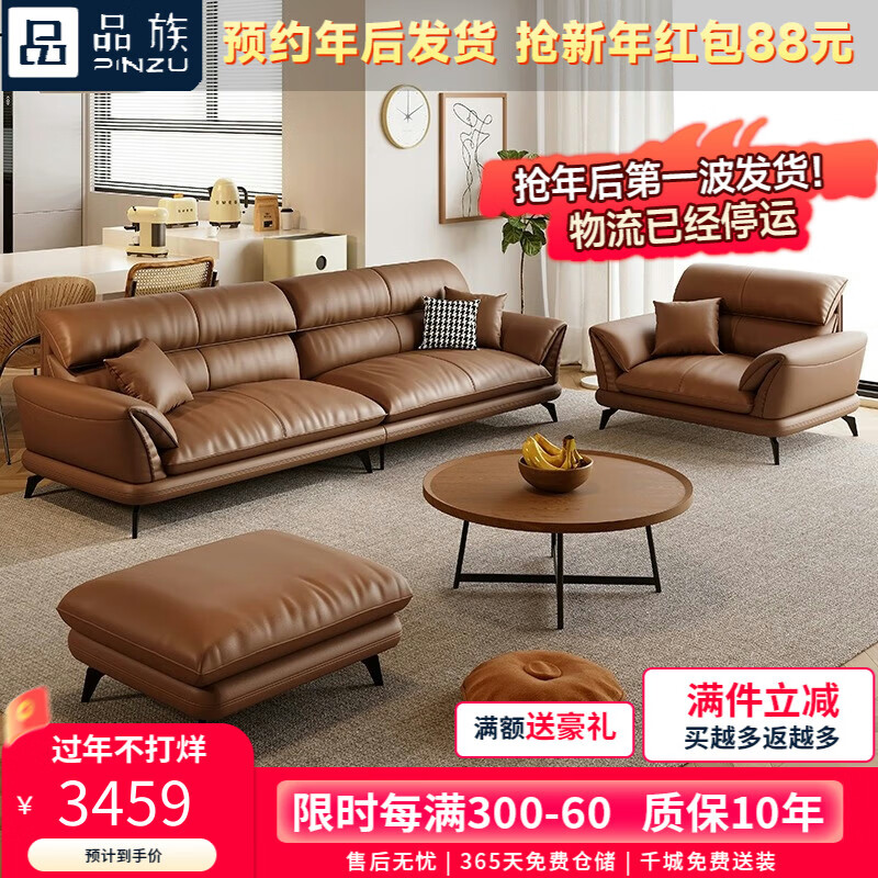 品族意式真皮沙发头层牛皮沙发客厅小户型直排沙发PZ-688 3.0米四a价格:4299.00元!