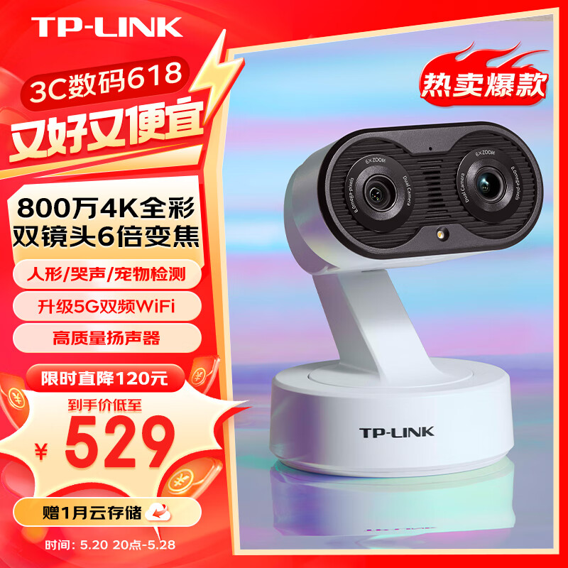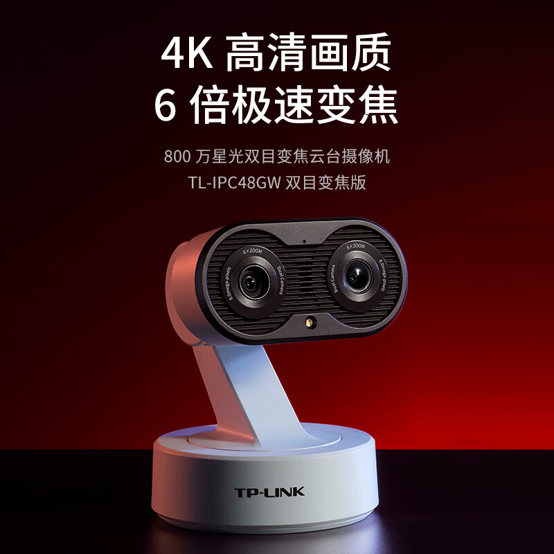 TP-link 800万双摄6倍变焦4K画质 5G双频wifi无线监控摄像头家用全彩网络监控器摄像机IPC48GW双目变焦版价格:549.00元!