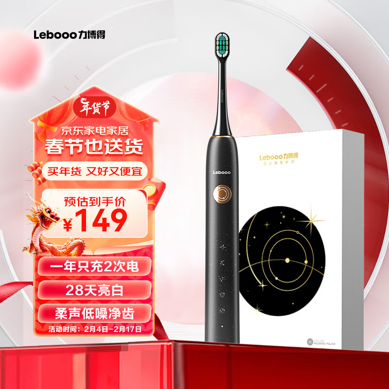 力博得(Lebooo)电动牙刷智能震动全自动高频低噪 新年礼物情人节礼物成人情侣星空礼盒 星芒PRO 极夜黑价格:179.00元!