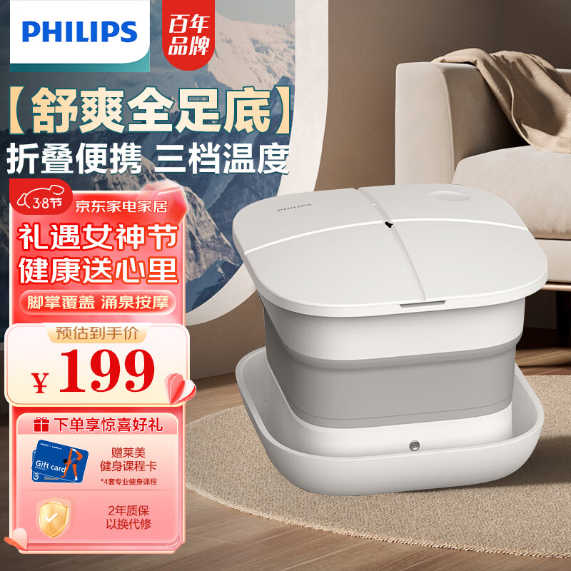 飞利浦(PHILIPS)泡脚桶加热洗脚盆加热自动按摩泡脚盆加热按摩足浴盆泡脚桶折叠洗脚桶按摩足浴桶三八妇女节礼物价格:199.00元!