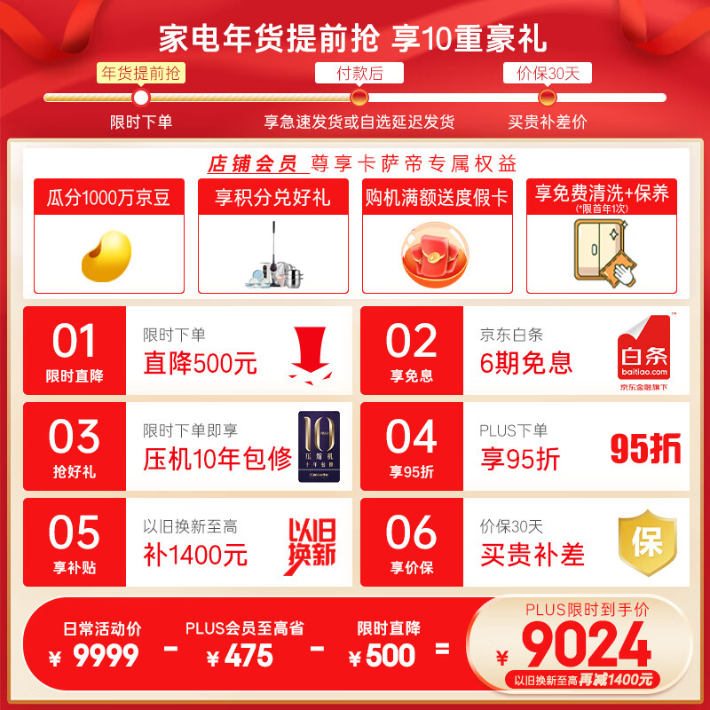 卡萨帝(Casarte)555升纯白系列超薄法式多门四开门超大容量自由嵌入式一级能效家用白色冰箱BCD-555WDGAU1价格:9499.00元!