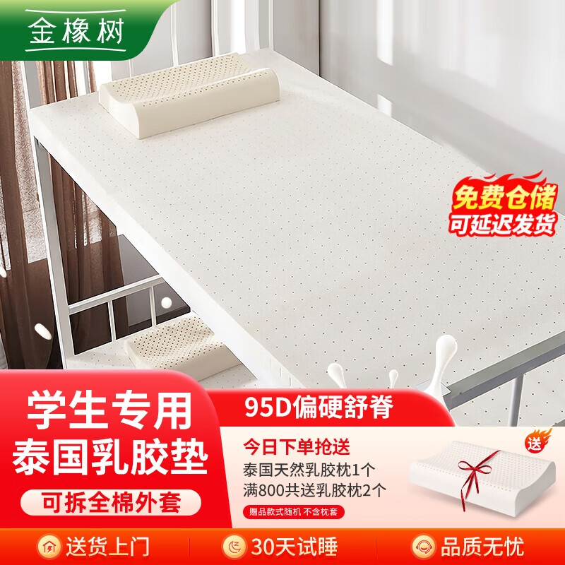 金橡树泰国进口天然乳胶床垫加厚宿舍学生单人床垫90*190*10cm 云梦95D价格:1135.00元!