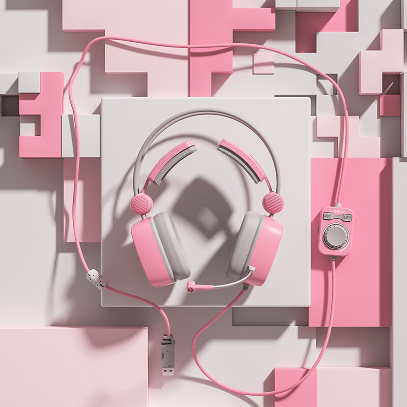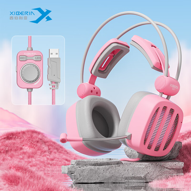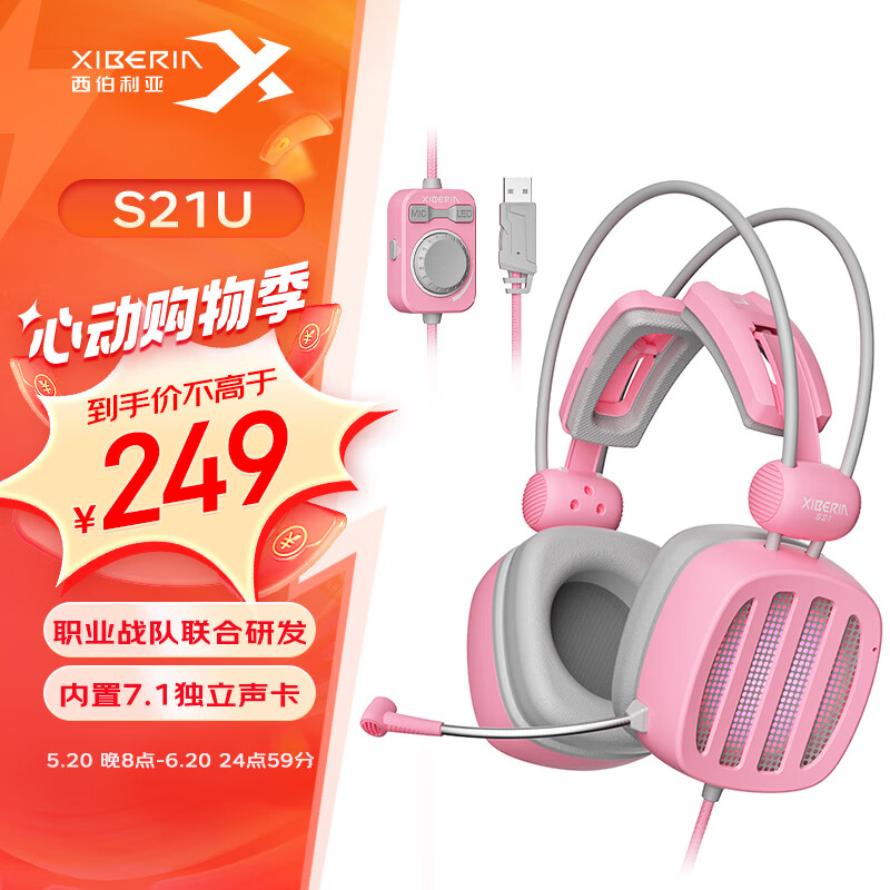 西伯利亚S21U粉色游戏耳机头戴式有线7.1电竞电脑耳机网红主播直播耳机少女学生网课电脑耳机麦克风二合一价格:319.00元!