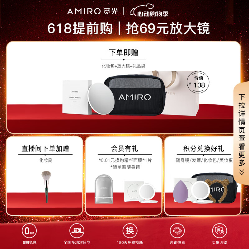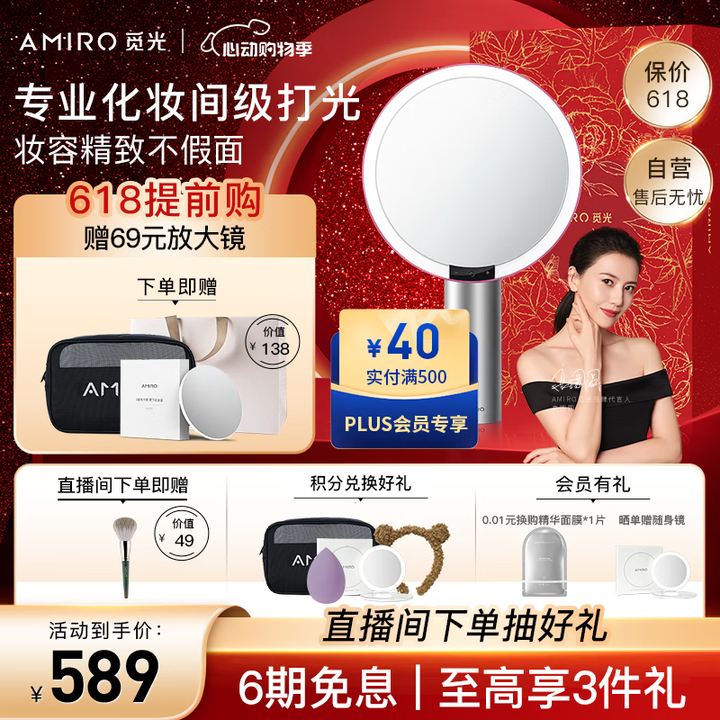 AMIRO觅光化妆镜带灯led日光梳妆美妆镜子智能桌面 520情人节生日女生礼物实用送老婆 丝绒红礼盒价格:719.00元!