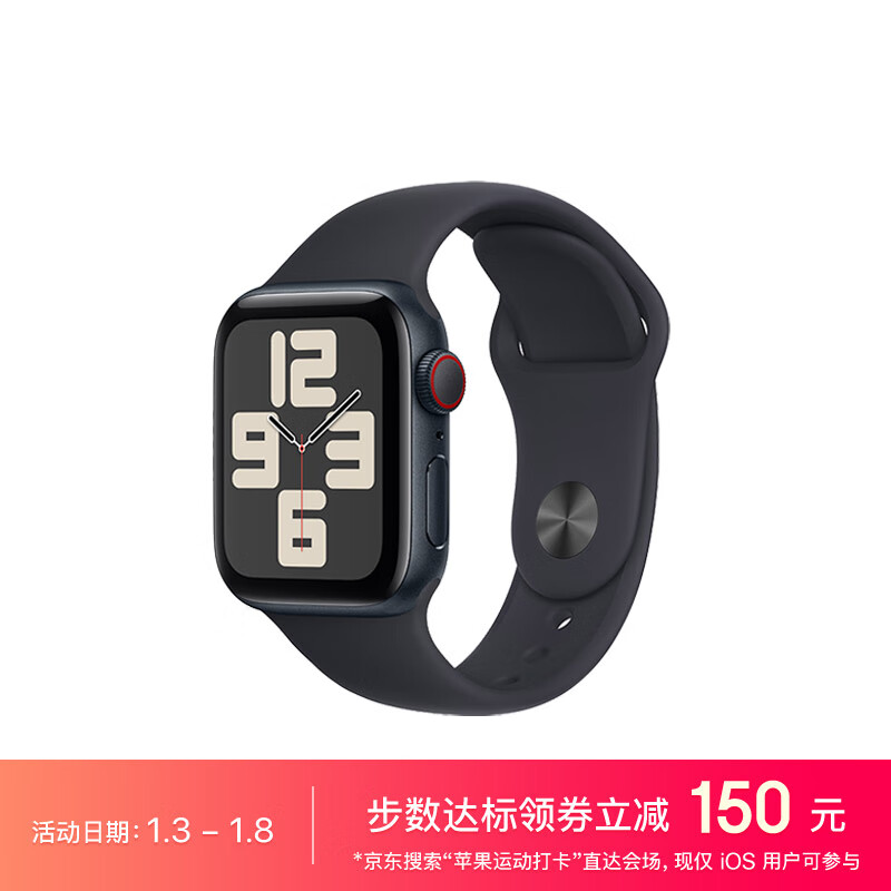 Apple Watch SE 2023款智能手表GPS + 蜂窝款40毫米午夜色铝金属表壳午夜色运动型表带M/L 健康手表MRGC3CH/A价格:2399.00元!