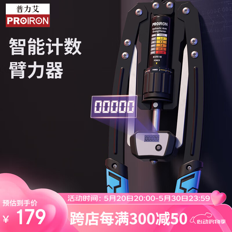 PROIRON普力艾 臂力器智能计数可调节液压臂力棒男士握力棒练胸肌器材价格:178.00元!