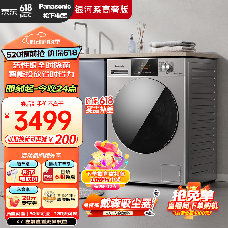 松下(Panasonic)滚筒洗衣机全自动 超薄全嵌【银河系高奢版】10公斤智能投放 活性银除菌 温水泡沫净XQG100-811M价格:3799.00元!