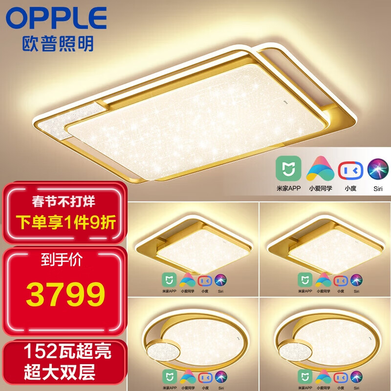 欧普(OPPLE)吸顶灯几何现代简约LED客厅卧室餐厅灯具套餐智能语音调光 套餐7价格:4221.00元!