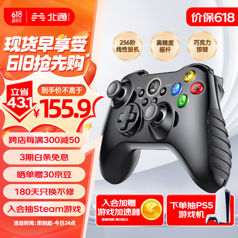 北通阿修罗2无线游戏手柄xbox线性扳机震动PC电脑steam电视特斯拉即插即玩双人成行原神胡闹厨房NBA 黑价格:155.90元!